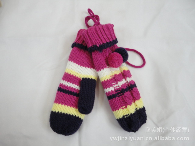 廠家直銷韓版翻口毛球雙層毛線手套 冬季可愛女生必備
