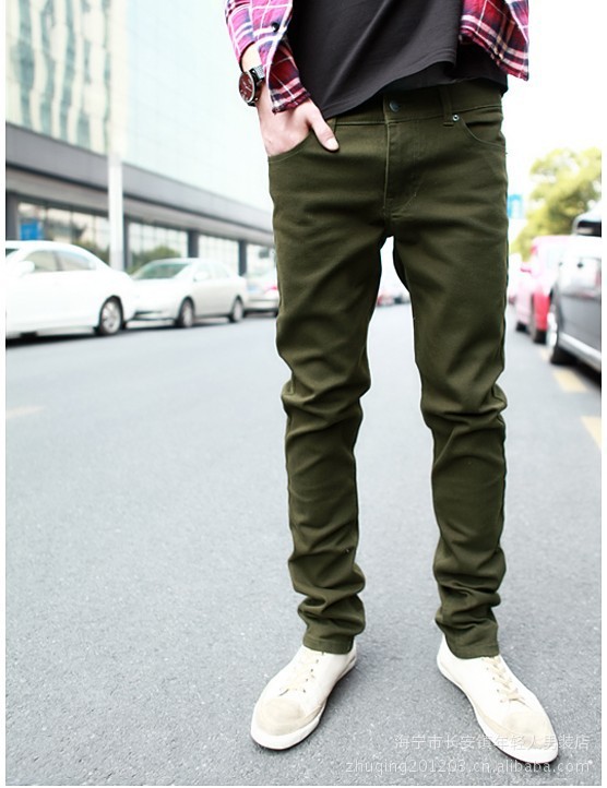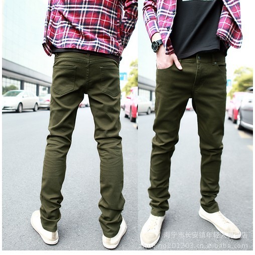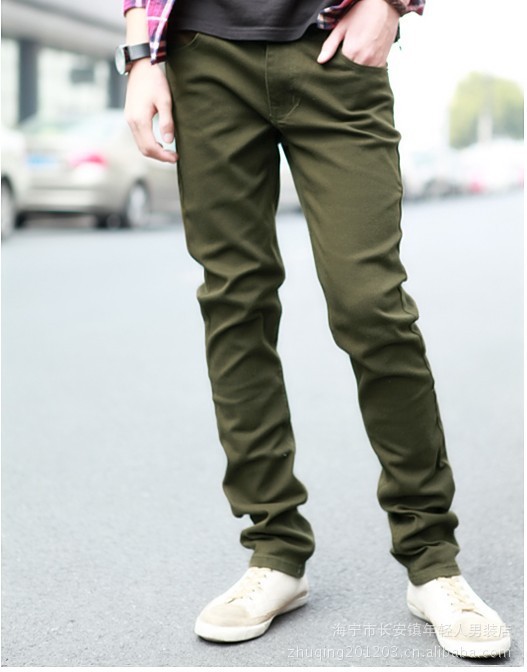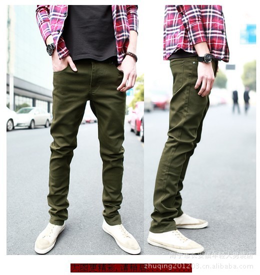 批發(fā)韓版 新款 修身型 男士個(gè)性休閑純色褲 修身休閑褲 帥氣軍綠