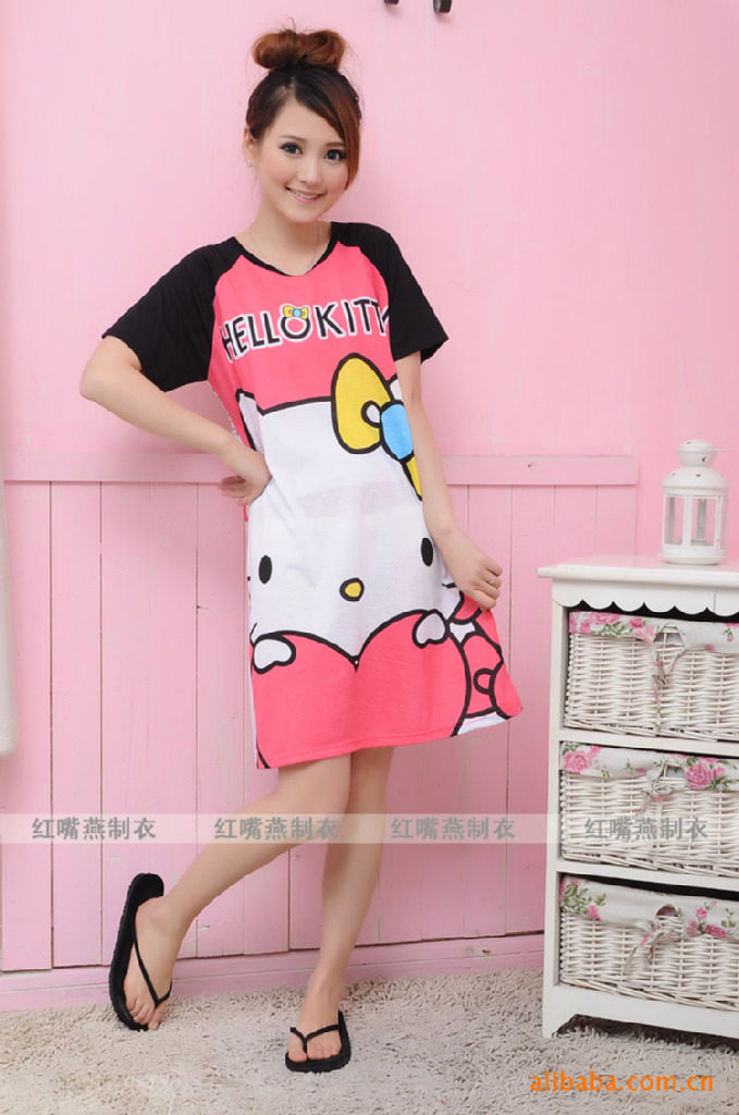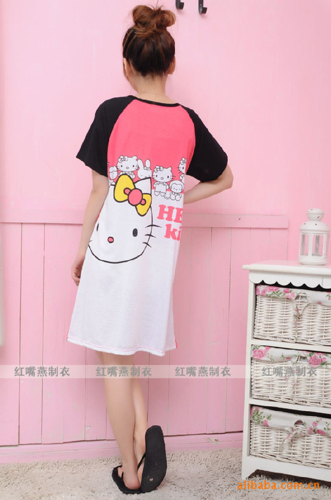 特價 2件包郵 夏韓版可愛卡通凱蒂貓海寶海賊王米奇短袖純棉睡裙