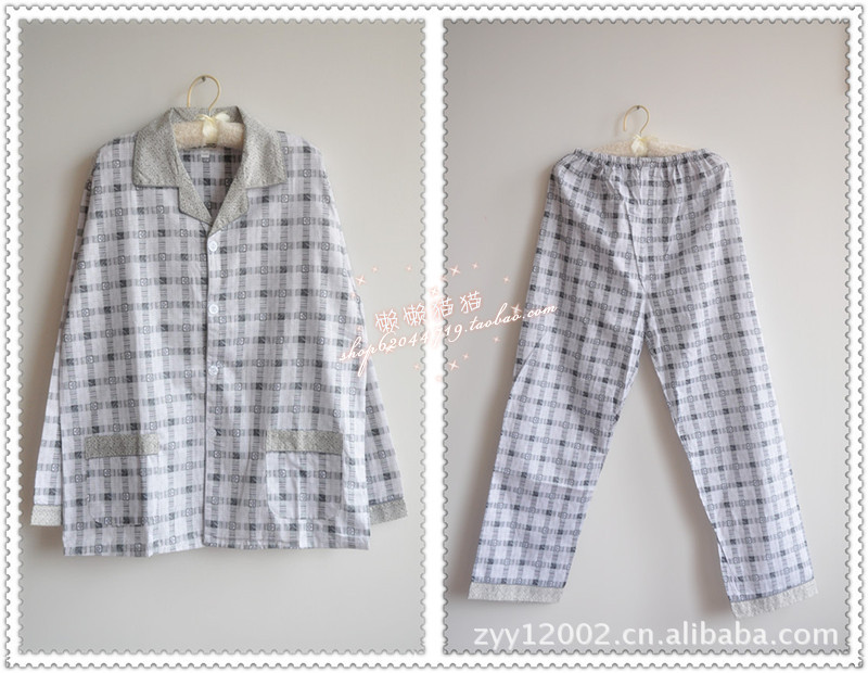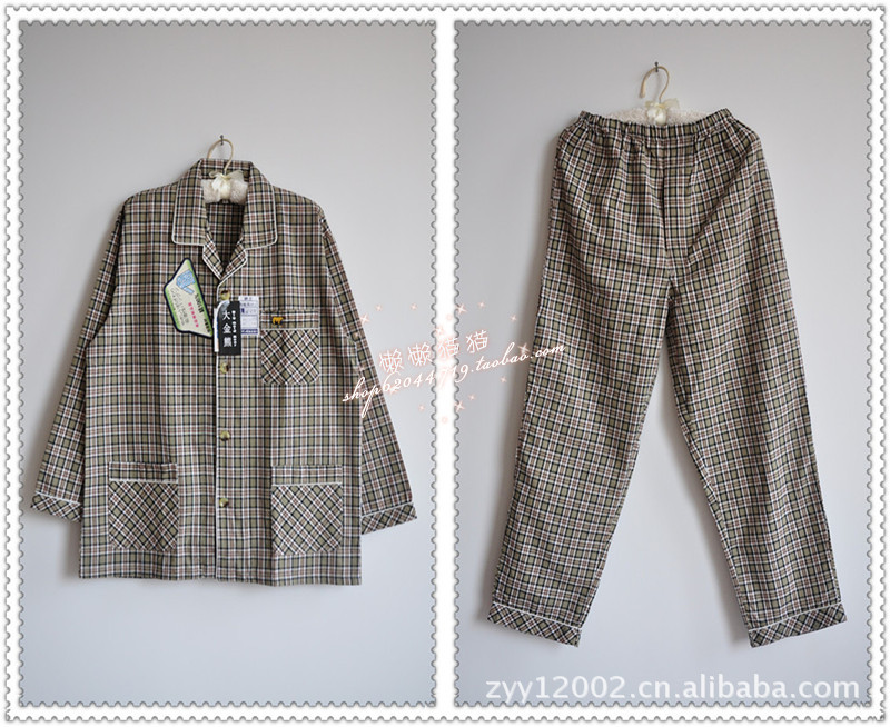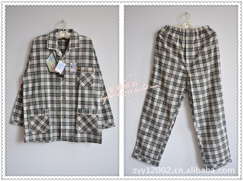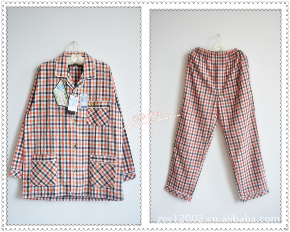 批發(fā)零售代發(fā) 日系原單外貿(mào)男士純棉紅格子長(zhǎng)袖睡衣套裝居家服