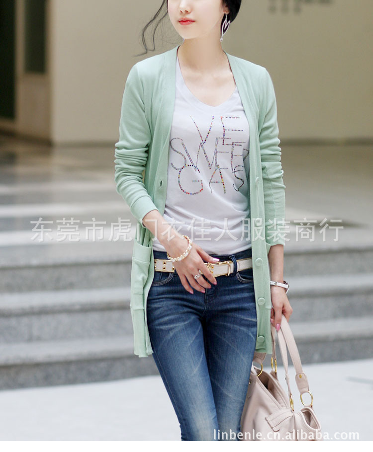 2011新品秋裝新款 韓版女裝中長(zhǎng)款長(zhǎng)袖開(kāi)衫針織衫外套