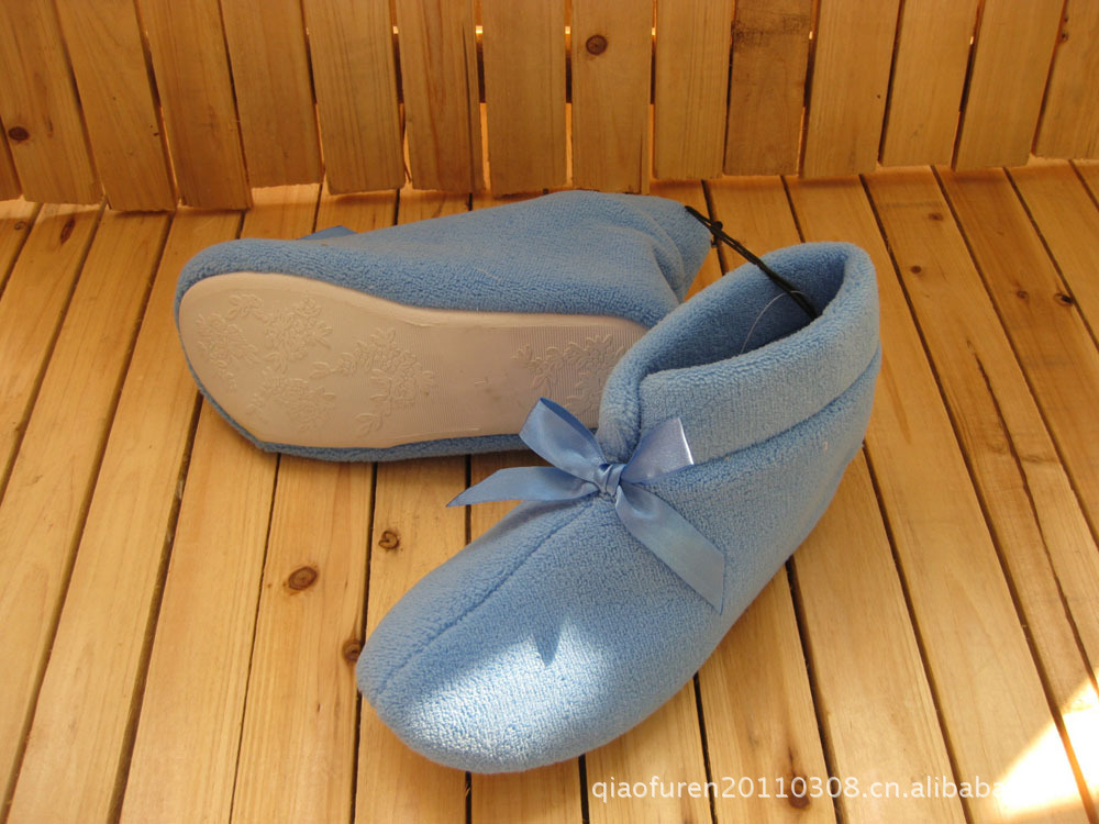 時尚 家居 藍(lán)色 珊瑚絨保暖靴子