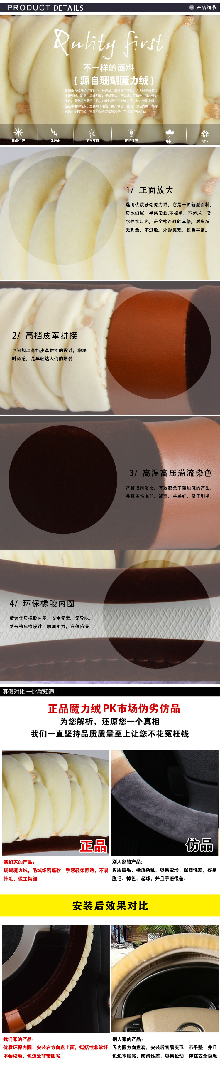 韓國(guó)絨手感如細(xì)滑般柔順,不起球,不掉毛,易清洗,且能起到保暖作用。其價(jià)格為一般優(yōu)質(zhì)毛絨的2倍以上,為冬季汽車(chē)產(chǎn)品的優(yōu)選用料。另:由于韓國(guó)絨的特性,在不同的光源、不同的光向中會(huì)有不同效果,有時(shí)會(huì)顯墨綠,有時(shí)會(huì)有深棕加墨綠的感覺(jué),請(qǐng)買(mǎi)家注意。本款為今年冬季尤師傅廠(chǎng)方和實(shí)體店總產(chǎn)品,其超好的手感獲得一致贊賞。