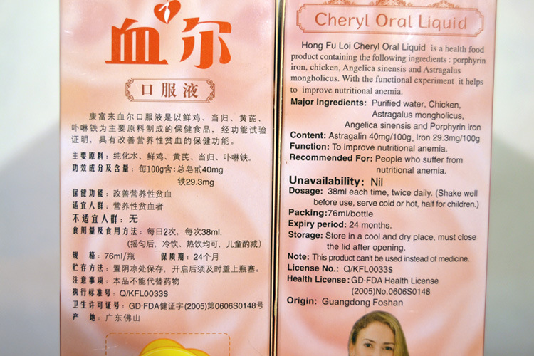 受讓方地址申請(qǐng)人中文名稱廣東康富來(lái)藥業(yè)有限公司申請(qǐng)人地址佛山市順德區(qū)容桂街道容里成業(yè)路63號(hào)保[jian]功能改善營(yíng)養(yǎng)性貧血功效成分/標(biāo)志性成分含量每100g含:總皂甙 40mg、鐵 29.3mg主要原料鮮雞、當(dāng)歸、黃芪、卟啉鐵適宜人群營(yíng)養(yǎng)性貧血者不適宜人群無(wú)食用方法及食用量每日2次,每次38ml產(chǎn)品規(guī)格152ml/瓶、76ml/瓶、38ml/瓶保質(zhì)期24個(gè)月貯藏方法置陰涼處保存,開(kāi)啟后須及時(shí)蓋上瓶塞注意事項(xiàng)本品不能代替藥物批準(zhǔn)日期2000-09-27批準(zhǔn)變更日期2004-12-10變更內(nèi)容產(chǎn)品名稱由康富來(lái)血爾口服液變更為康富來(lái)牌血爾口服液 申報(bào)單位名稱由順德康富來(lái)保[jian]品有限公司變更為佛山市順德康富來(lái)保[jian]品有限公司 產(chǎn)品規(guī)格由152ml/瓶變更為152ml/瓶、76ml/瓶、38ml/瓶 申報(bào)單位地址由廣東順德容桂容里康富來(lái)大道88號(hào)變更為佛山市順德區(qū)容桂街道容里利豐工業(yè)區(qū) 生產(chǎn)企業(yè)名稱由順德康富來(lái)保[jian]品有限公司變更為佛山市順德康富來(lái)保[jian]品有限公司備案日期2011-01-10備案內(nèi)容備案日期:2011-01-10 申報(bào)單位名稱變更:該申報(bào)單位已由佛山市順德康富來(lái)保[jian]品有限公司變?yōu)閺V東康富來(lái)藥業(yè)有限公司 申報(bào)單位地址變更:該申報(bào)地址已由佛山市順德區(qū)容桂街道容里利豐工業(yè)區(qū)變?yōu)榉鹕绞许樀聟^(qū)容桂街道容里成業(yè)路63號(hào)轉(zhuǎn)讓方中文名稱轉(zhuǎn)讓方英文名稱轉(zhuǎn)讓方地址受讓方轉(zhuǎn)讓前批準(zhǔn)文號(hào)批準(zhǔn)轉(zhuǎn)讓日期補(bǔ)發(fā)日期備注產(chǎn)品編號(hào)7401批準(zhǔn)文號(hào)衛(wèi)食健字(2000)第0498號(hào)