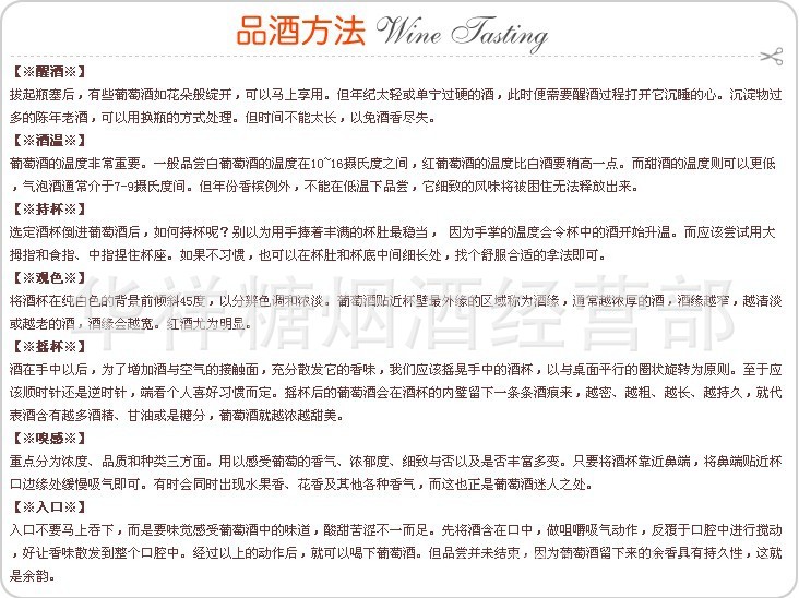 口感:入口時酒體均衡豐厚順滑,且徐徐帶出柔柔的云尼拿香草,甘草與胡椒氣息,留香經(jīng)久不息.