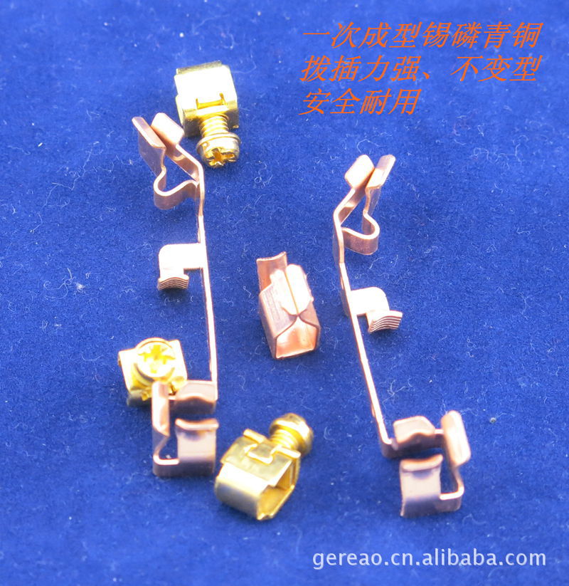 插座彈片:采用0.6毫米厚的錫磷青銅(呈紫色)精制而成,具有耐腐蝕、耐磨損、強(qiáng)度高、彈力持久、導(dǎo)電性能好、不易發(fā)熱、抗疲勞強(qiáng)等特點。