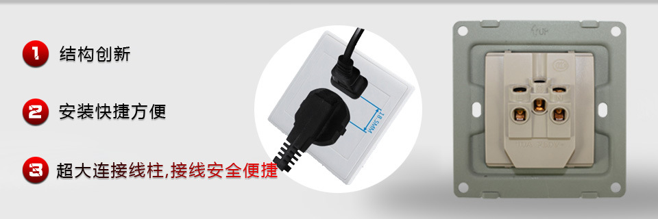 插座保護(hù)門:采用全方位防觸電的保護(hù)門,有效防止單極插入,避免兒童捅插觸電。