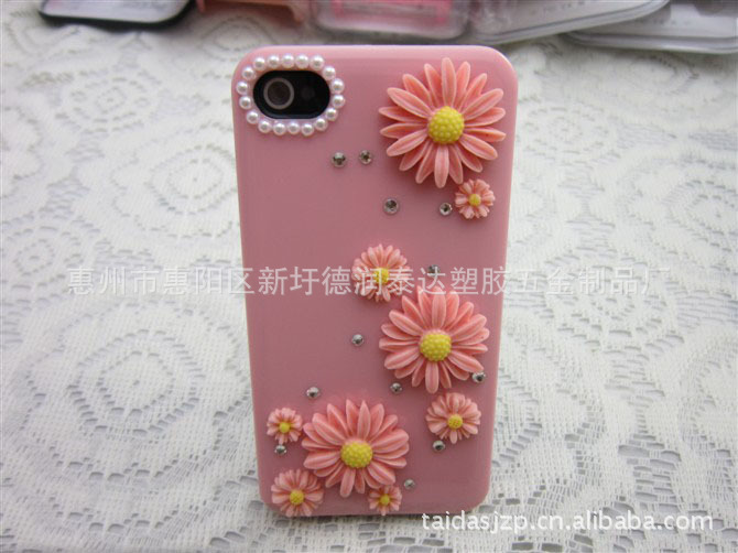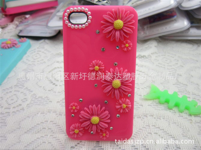 新款時尚 iphone4保護(hù)套 太陽花 水鉆外殼
