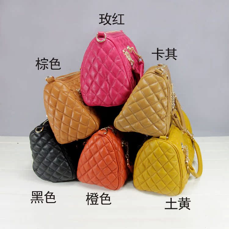 M737玫紅【廣州女包批發(fā)現(xiàn)貨】2012韓版明星款鏈條包菱格時尚女包