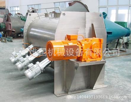 此類(lèi)型混合機(jī)亦可做成連續(xù)式混合機(jī),通過(guò)調(diào)整出料閥的開(kāi)口大小來(lái)控制物料在筒體內(nèi)的滯留時(shí)間,以達(dá)到控制混合均勻度的目的。