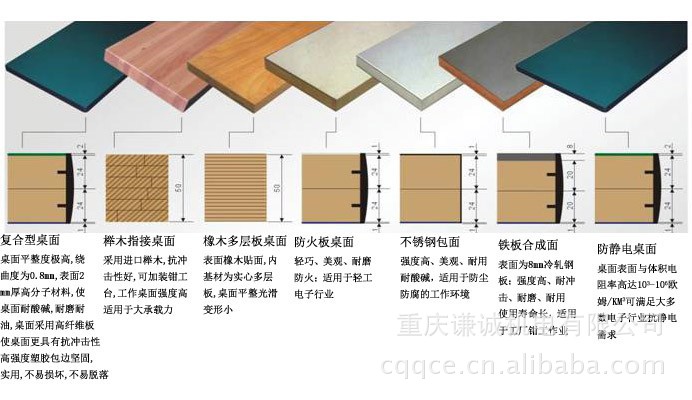 謙誠(chéng)工作桌桌面有復(fù)合桌面、櫸木指接桌面、橡木多層板、防火板桌面、不銹鋼包面、鐵板合成桌面、防靜電桌面等多種材質(zhì)桌面,其性能也各異。
