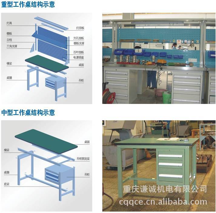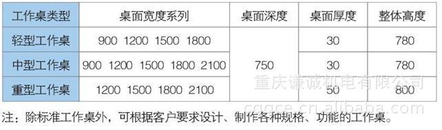 6、重型工作桌可選裝臺(tái)虎鉗等工具設(shè)備。謙誠(chéng)輕型工作桌均載為100~200kg,中型工作桌均載為400~500kg ,重型工作桌均載為1000kg