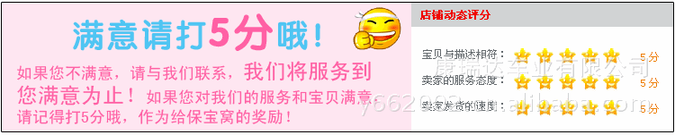 2.所有買家自己或者自己親人朋友簽收后的商品、如出現(xiàn)短少、破損的情況,而又沒及時跟我們聯(lián)系,根椐淘寶交易規(guī)則責(zé)任一律由買家承擔(dān)。當(dāng)然,我們發(fā)貨時都會檢查每個配件而且加強(qiáng)包裝,防止運(yùn)輸過程中的破損。
