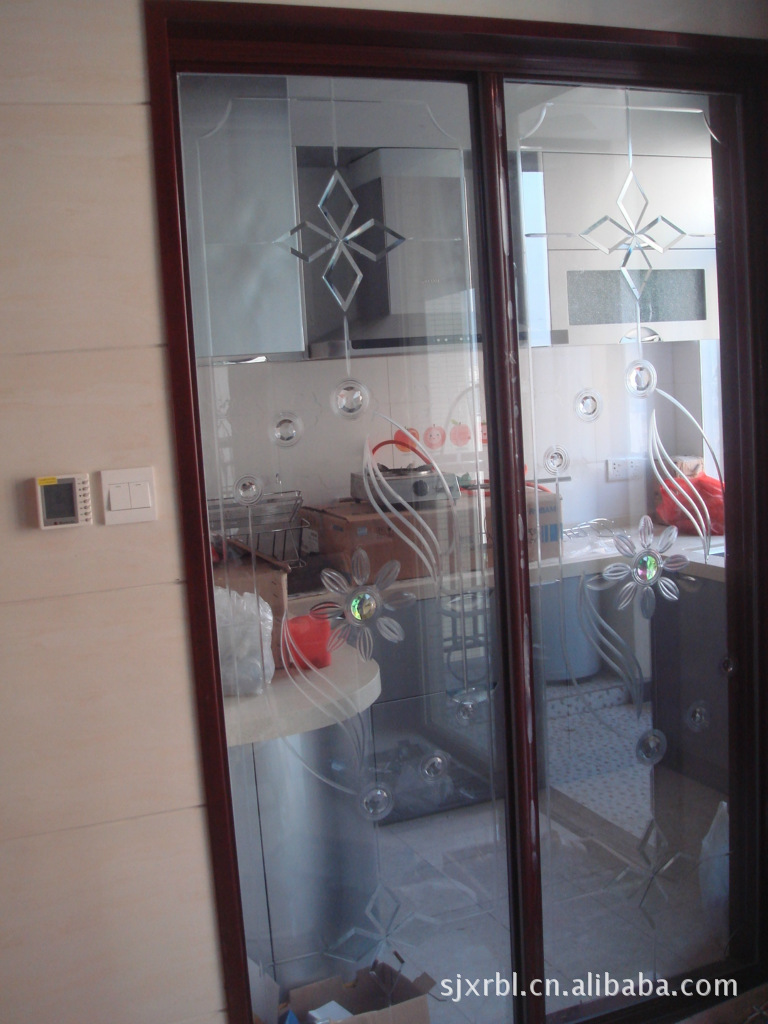 鋼化藝術(shù)玻璃、典雅高貴、通透性好、圖案完美按比例縮放,是推拉門中的精品。