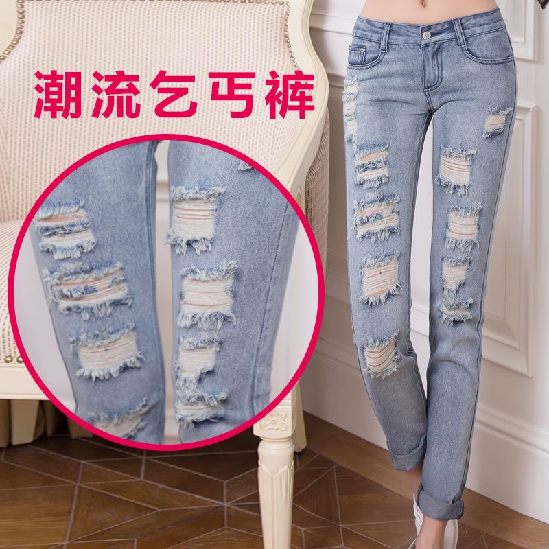 東大門秋裝新款女韓版官網(wǎng)磨破顯瘦小腳哈倫褲牛仔褲女式長(zhǎng)褲¥45.00