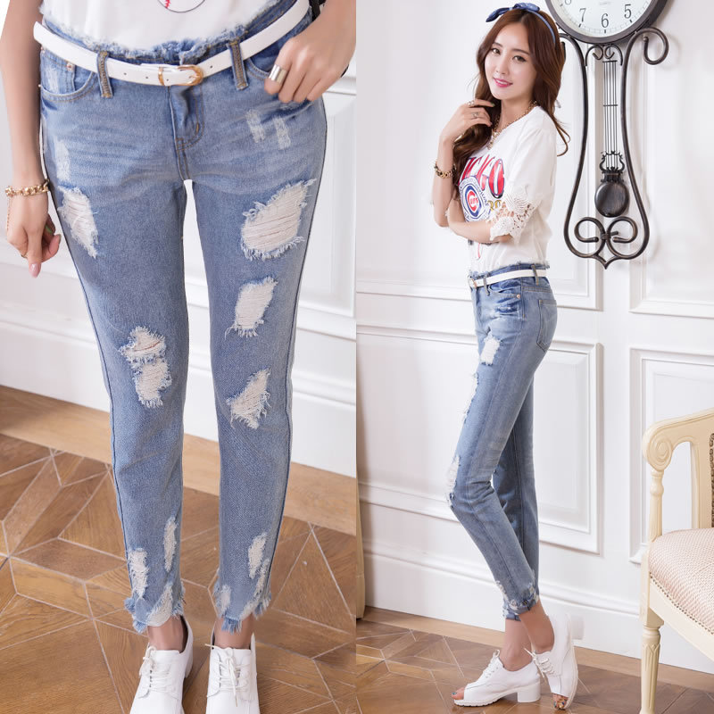 東大門(mén)秋裝新款女韓版官網(wǎng)磨破顯瘦小腳哈倫褲牛仔褲女式長(zhǎng)褲¥45.00