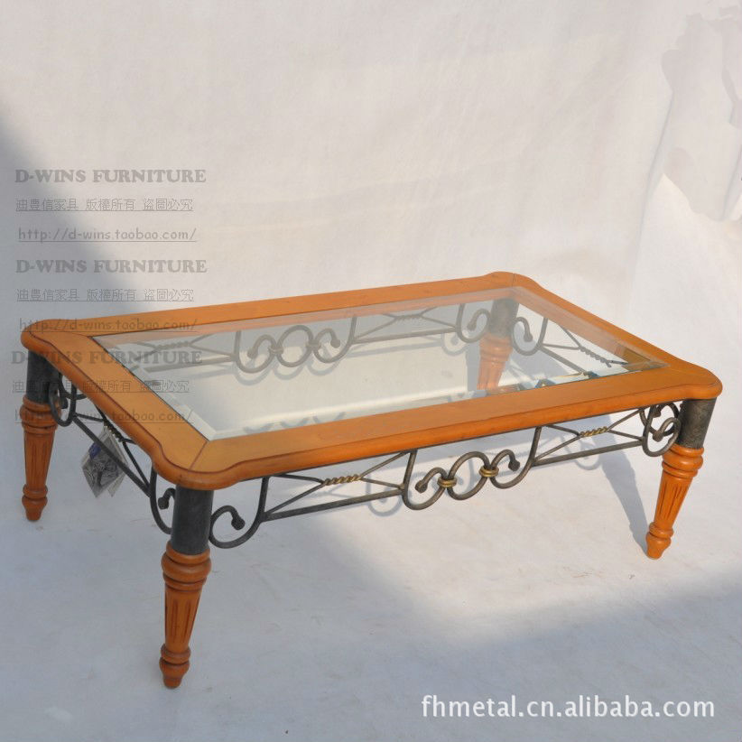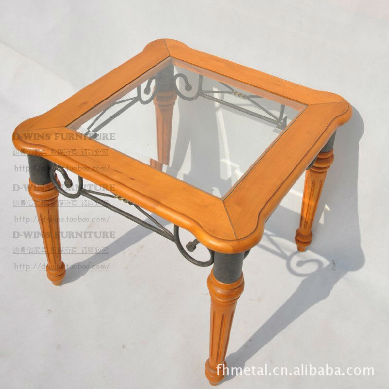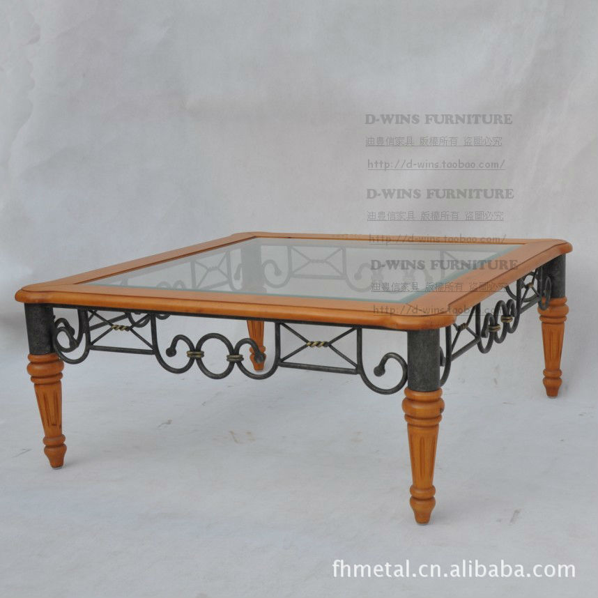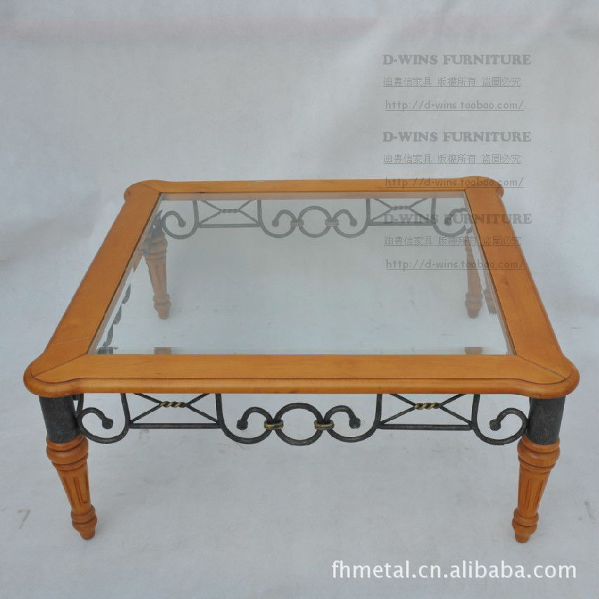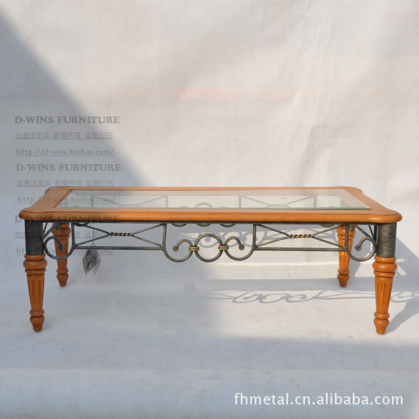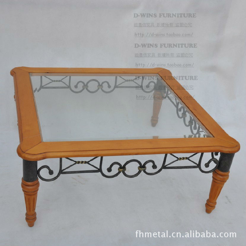 迪豐信供應(yīng)實木玻璃茶幾美式鐵藝茶幾 大方幾