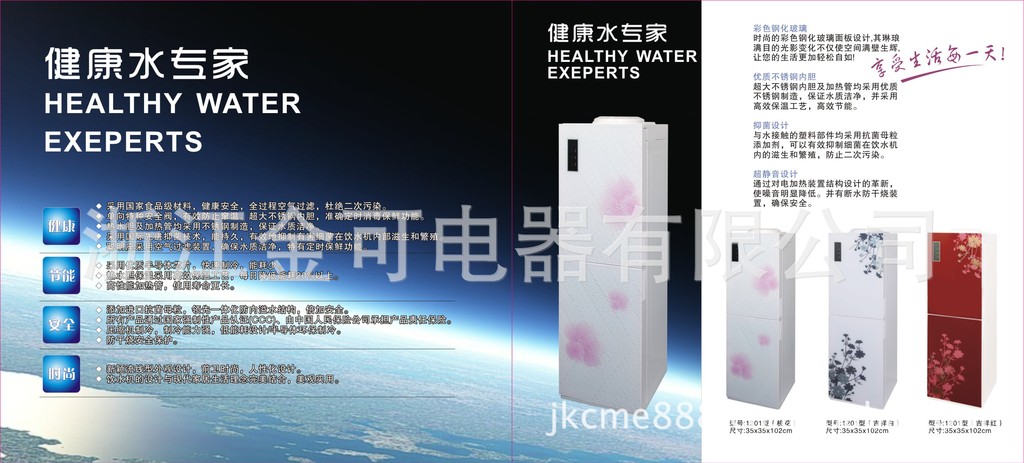 本公司生產(chǎn)的豪華型系列飲水機(jī)是運(yùn)用冰箱美觀大方的造型藝術(shù)和先進(jìn)的制冷技術(shù),引用微電腦控制溫度和電磁閥控制水流量手段。其外觀大方簡(jiǎn)潔,技術(shù)先進(jìn),工藝精湛,倡導(dǎo)現(xiàn)代生活,裝點(diǎn)時(shí)尚空間,引領(lǐng)時(shí)代潮流。