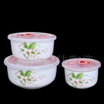 保鮮碗三件套裝 陶瓷密封保鮮盒 禮品套裝 冰箱微波爐適用 logo