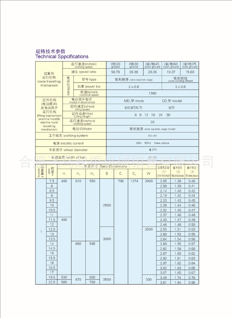 LD型電動(dòng)單梁起重機(jī)適用于在工作級(jí)別A3~A4,工作環(huán)境溫度-25℃~ 40℃,相對(duì)濕度≤85﹪的無(wú)易燃、易爆危險(xiǎn)及腐蝕性介質(zhì)環(huán)境條件下工作。起重量為1~20噸,跨度為4~31.5米。起重機(jī)電源為三相交流,額定頻率為50Hz或60Hz。額定電壓為220V~660V。電動(dòng)機(jī)允許電壓波動(dòng)的上下限為±10%,起重機(jī)內(nèi)部電壓損失不大于3%。
