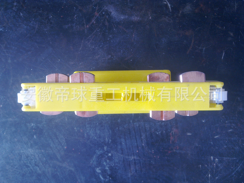 集電器是滑觸線(xiàn)系統(tǒng)中集電側(cè)拾取電能的主要裝置之一,它通過(guò)集電刷與導(dǎo)軌的滑動(dòng)接觸,將電能直接傳導(dǎo)至用電器,從而實(shí)現(xiàn)系統(tǒng)的移動(dòng)供電。集電器由機(jī)械結(jié)構(gòu)的張力裝置和直接與導(dǎo)軌滑動(dòng)接觸的集電刷兩部分組成,機(jī)械結(jié)構(gòu)的張力裝置決定集電刷與導(dǎo)軌的滑動(dòng)接觸壓力和機(jī)構(gòu)的穩(wěn)定性,集電刷則是導(dǎo)軌滑動(dòng)接觸拾取電能的導(dǎo)體,它的性能和導(dǎo)電質(zhì)量以及材料結(jié)構(gòu)成分的優(yōu)劣,將直接影響整個(gè)系統(tǒng)設(shè)備的安全運(yùn)行質(zhì)量,因此集電器是整個(gè)滑線(xiàn)系統(tǒng)中主要的部件之一。