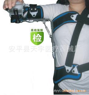 此產(chǎn)品名為肩外展矯形器又稱為肩外展支架,是一種靜態(tài)固定式肩矯形器。適用于肩關(guān)節(jié)手術(shù)后固定、肱骨骨折合并橈神經(jīng)損傷、三角肌麻痹、棘上肌腱斷裂、肩關(guān)節(jié)部位骨折、脫位整復(fù)后、臂叢神經(jīng)麻痹或拉傷,也用急性肩周炎、肩關(guān)節(jié)化膿性關(guān)節(jié)炎、肩關(guān)節(jié)結(jié)核等。其特點是可將肩關(guān)節(jié)固定在外展、前屈、內(nèi)旋和肘關(guān)節(jié)屈曲、腕關(guān)節(jié)功能位;并在患者站立或臥床時,可使患肢處于抬高的位置,以利于消腫、消炎、止痛。