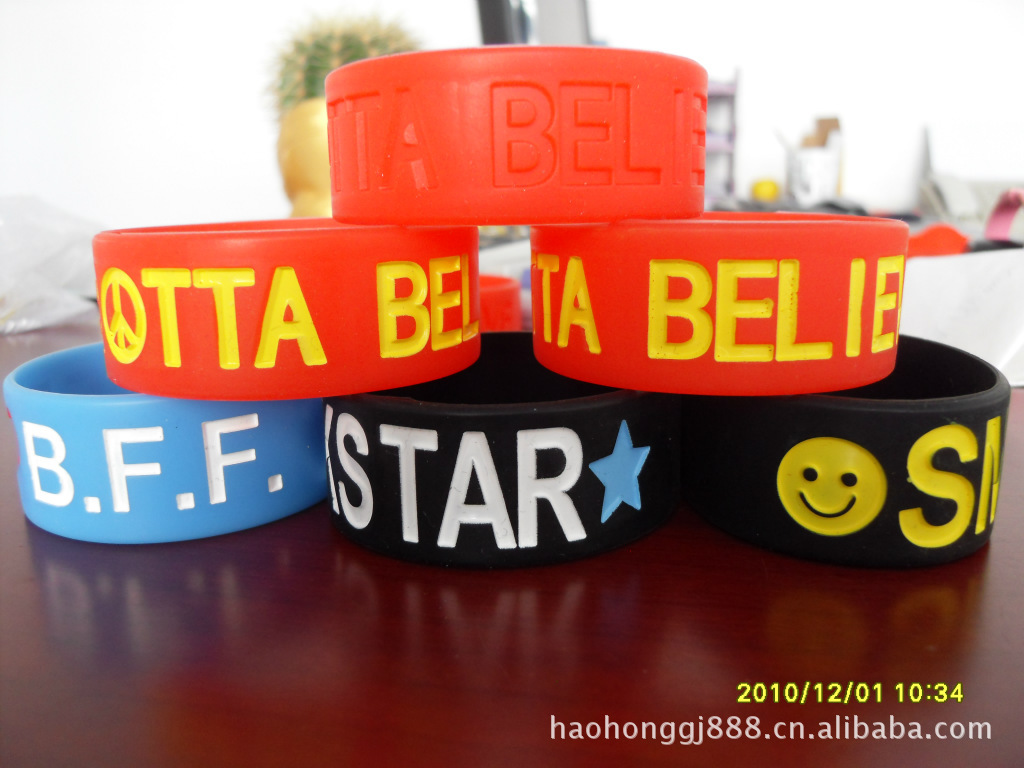 產(chǎn)品特點:手環(huán)的材質(zhì)為矽膠材質(zhì),產(chǎn)品的規(guī)格大小均能設(shè)計生產(chǎn),產(chǎn)品表面可以定制產(chǎn)品LOGO,環(huán)保無毒。且具有手感柔軟,彈性度好,色彩鮮艷、造型美觀等優(yōu)點