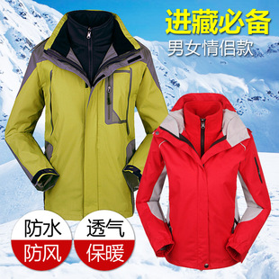 廠家批發(fā)戶外情侶款男女沖鋒衣三合一兩件套可拆卸加絨滑雪服代發(fā)銷量533
