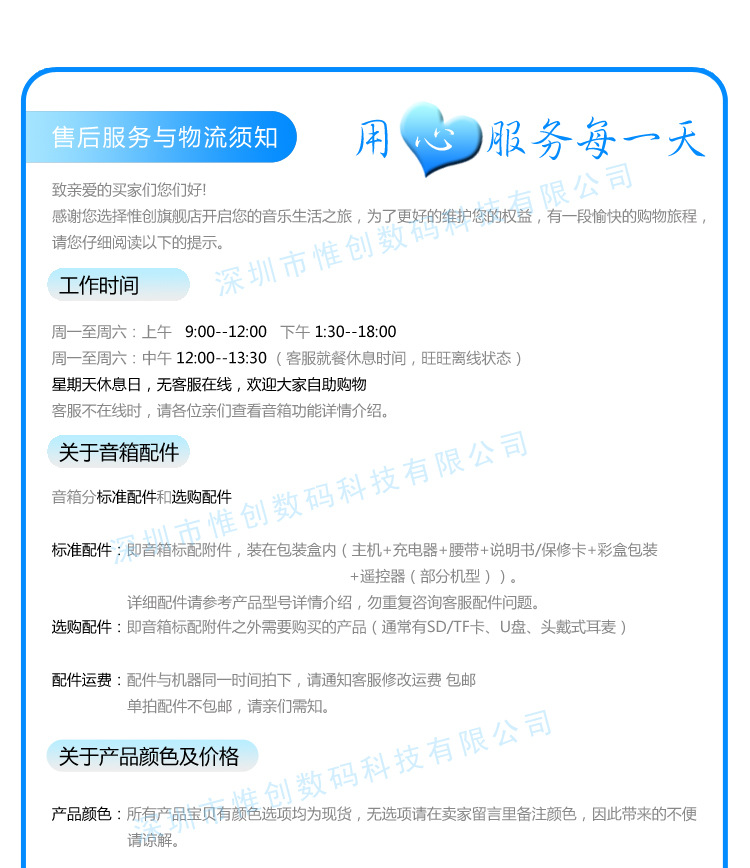 歡迎各地經(jīng)銷商和代理商前來咨詢,更歡迎淘寶各分銷商! 如果您有機會來深圳,歡迎來我廠參觀指導(dǎo)!本公司主營移動DVD,擴音器,可承接批量0EM定單,歡迎前來咨詢與洽談!