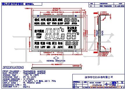 空調(diào)溫控器 LCD液晶屏,尺寸:69*51*47,蘭底黑字(綠底黑字)可按客戶要求訂做
