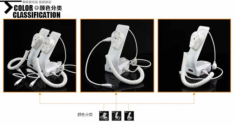 本品的默認(rèn)的充電線是MicroUSB充電線,iphone系列不適合本防盜展示架的充電款。由于展示架工作時(shí)需要耗電,所以親們?cè)谑褂脮r(shí)要注意及時(shí)給展示架充電。