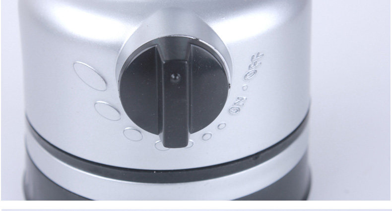 頭部:指南針設計1.ABS材料表面銀色。2.使用普通3節(jié)5號電池,耗電極省,使用旋轉(zhuǎn)型開關;燈光亮度可根據(jù)自己的需求調(diào)節(jié)開關燈亮;可連續(xù)照明40小時左右(間斷使用時間更長),照射范圍在10平方米左右的房間可清晰照亮整個房間。3.LED燈泡壽命極長,可使用10萬小時,不必考慮更換燈泡的問題。4.可防雨水,輕松應對野外惡劣環(huán)境。(注:不能潛水時使用)5.適合露營,釣魚,燒烤,停電使用,臺燈頂部有掛鉤可掛在帳篷頂部當帳蓬燈使用,頭部指南針設計。尺寸規(guī)格:高:160mm 頭部直徑:90mm底部直徑:75mm功能簡介:1.使用普通3節(jié)5號電池,耗電極省,使用旋轉(zhuǎn)型開關;燈光亮度可根據(jù)自己的需求調(diào)節(jié)開關燈亮;可連續(xù)照明40小時左右(間斷使用時間更長),照射范圍在10平方米左右的房間可清晰照亮整個房間。2.LED燈泡壽命極長,可使用10萬小時,不必考慮更換燈泡的問題。3.可防雨水,輕松應對野外惡劣環(huán)境。(注:不能潛水時使用)4.適合露營,釣魚,燒烤,停電使用,臺燈頂部有掛鉤可掛在帳篷頂部當帳蓬燈使用。頭部指南針設計,戶外使用跟貼心5.15顆高亮草帽型白光發(fā)光二極管(LED),真正的環(huán)保綠色光源,原材料無污染,生產(chǎn)無污染,低功耗,如此亮度,功耗卻不到1W(0.75W),可大大減少電池的使用量6、小巧的體積更易于外出攜帶