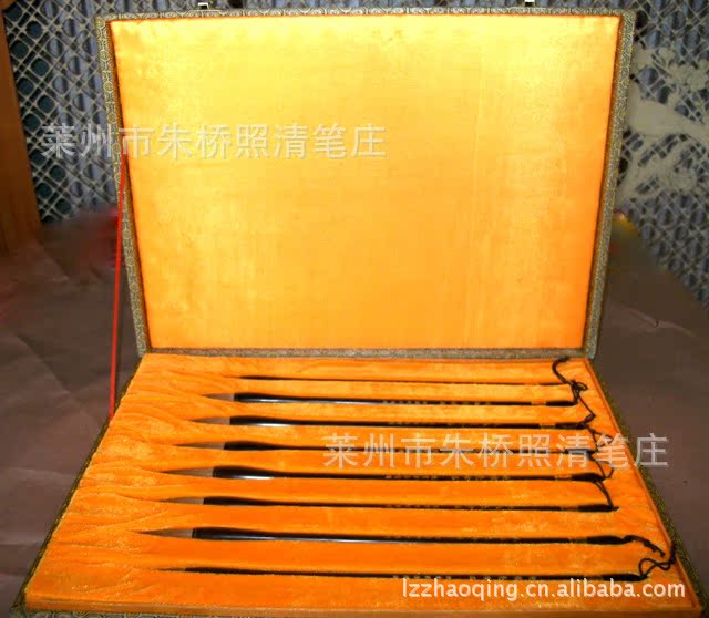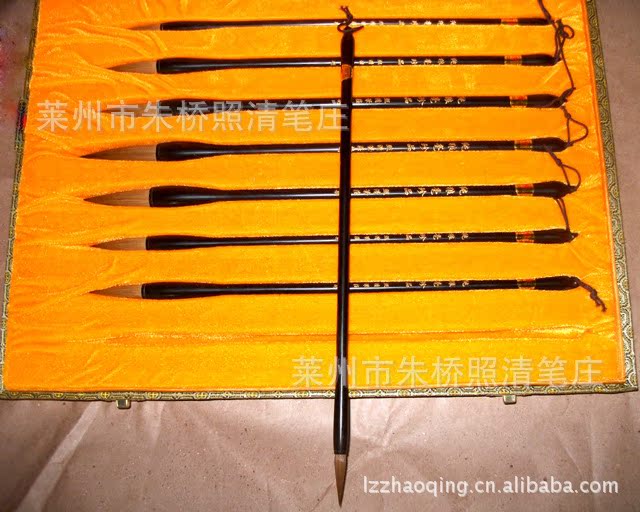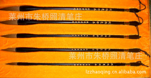本廠主要生產(chǎn):狼毫、羊毫、紫毫、兼毫、雞毫、灰鼠毫以及長峰、中峰、短峰、大楷、中楷、小楷,還有特制大提筆、鎮(zhèn)宅筆、高檔珍藏筆、禮品筆共有300多個品種900多個規(guī)格。主要用料筆頭以黑龍江省大興安嶺黃鼠狼尾毛、尾須、獾.針、兔影、貉.子毛、羊毛、羊須。筆桿用湖南湘妃、福建烤.紅等名竹以及虹木、紫譚、像牙、景太蘭等。