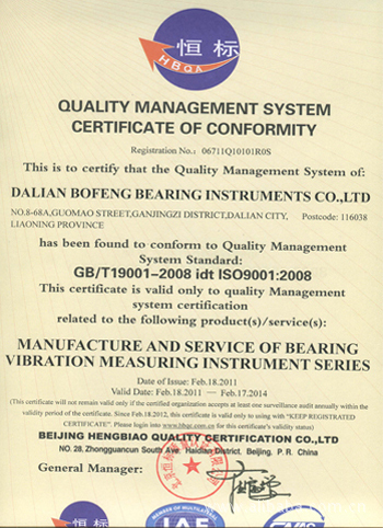 大連博峰軸承儀器有限公司是國(guó)內(nèi)重點(diǎn)科研、生產(chǎn)軸承振動(dòng)測(cè)量?jī)x器 的企業(yè)。該公司位于美麗的海濱城市——大連,交通方便,環(huán)境優(yōu)雅。本 公司技術(shù)力量雄厚,集幾十年研制生產(chǎn)振動(dòng)測(cè)量?jī)x的經(jīng)驗(yàn),本公司生產(chǎn)設(shè) 備精良,工藝水平超群,各種產(chǎn)品 的技術(shù)指標(biāo)不但超過(guò)國(guó)家標(biāo)準(zhǔn)而且躋 身于國(guó)際先進(jìn)水平。本公司已通過(guò)了質(zhì)量體系ISO9001-2000以及歐盟CE的認(rèn)證,具 有進(jìn)出口權(quán),目前產(chǎn)品已出口到美國(guó),德國(guó),立陶宛,日本,韓國(guó),印度,土耳其,意大利,波蘭, 臺(tái)灣等國(guó)家和地區(qū)。