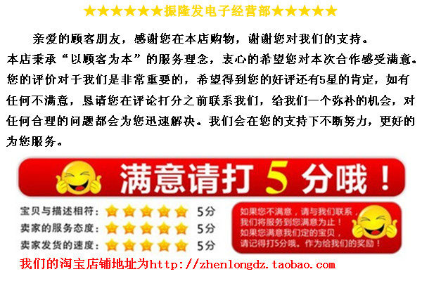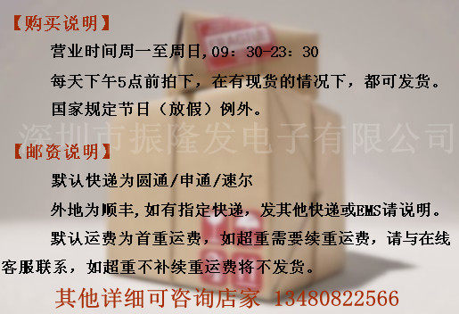 電子產(chǎn)品由于生產(chǎn)廠家的批次不同、IC版本的升級、會出現(xiàn)您所購買的圖片上的寶貝和您收到的實(shí)物寶貝有所不同,比如文字、型號后綴、圖標(biāo)、生產(chǎn)廠家,但是功能、質(zhì)量沒有改變,這些情況都是非常常見的現(xiàn)象,相信技術(shù)人員都明白這些道理。所以請親一定要認(rèn)準(zhǔn)確再拍哦!本店如果非電子質(zhì)量問題一律不可退貨哦!