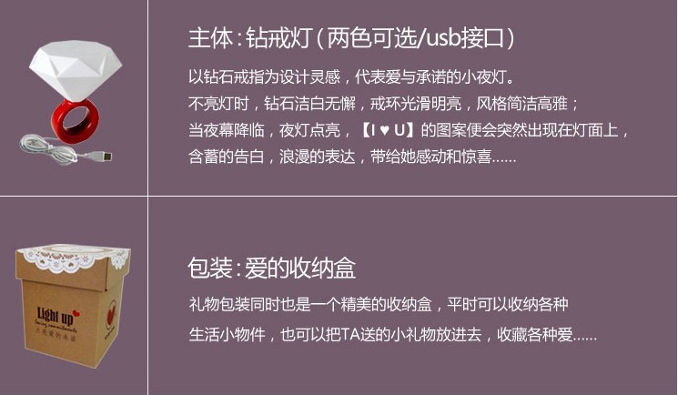 以鉆石戒指為設計靈感,代表愛與承諾的小夜燈。