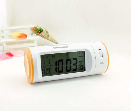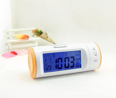可愛懶人小鬧鐘 靜音LED電子鐘 萬年歷時鐘 創(chuàng)意投影鐘 聲控鐘表