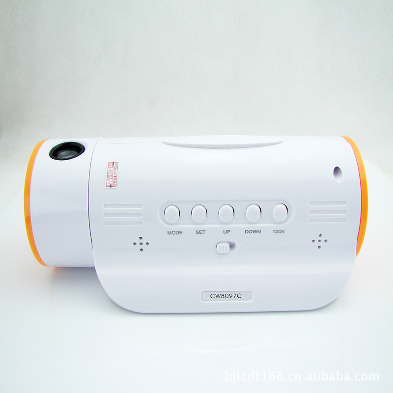 1: 在產(chǎn)品附近輕輕拍一下手掌,或輕敲擺放產(chǎn)品的臺面,或輕觸產(chǎn)品任何部位,背光燈立即點亮,同時投影燈也點亮,可將時間投影在墻壁或其它物體上;