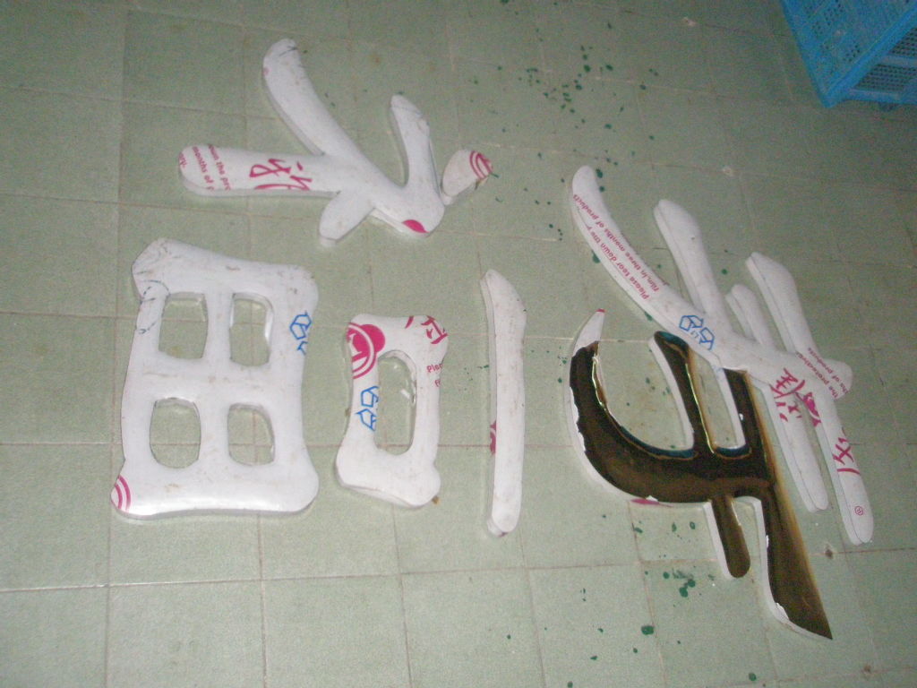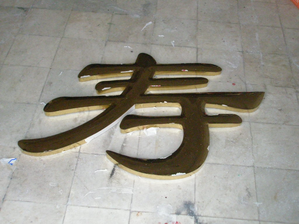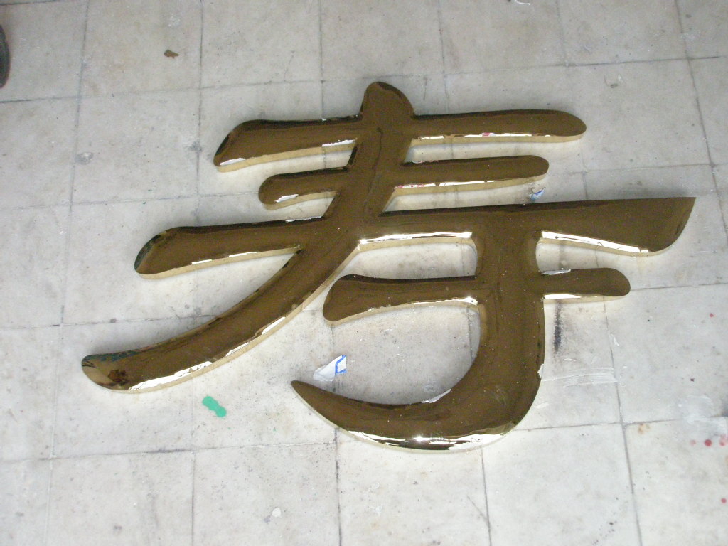 九)鈦金字噴膜:噴膜之前,一定要仔細(xì)檢查字表面的光潔度,特別是施工鍍過的字,需要再用布輕拭字面,沒有痕紋或水漬的方可噴膜,用噴槍噴涂,用硝酸纖維漆(無色透明)或過氯乙烯均可。不易過厚。噴好后不要碰,用軟紙包裝,運(yùn)赴使用現(xiàn)場(chǎng)安裝。