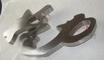 三)下料:把字稿直接貼在鈦金字板上,也可把字稿摹在鈦金板上,字稿四周適應(yīng)地留出余量,否則字變細(xì),變瘦,然后用電剪子剪成平字