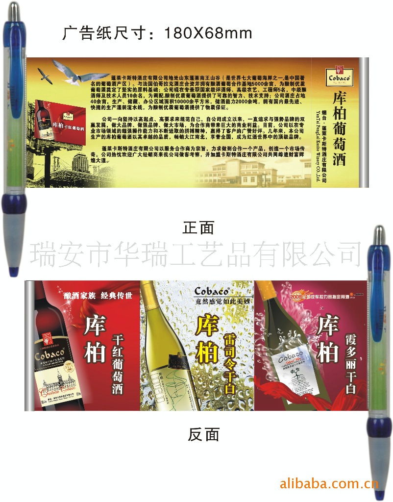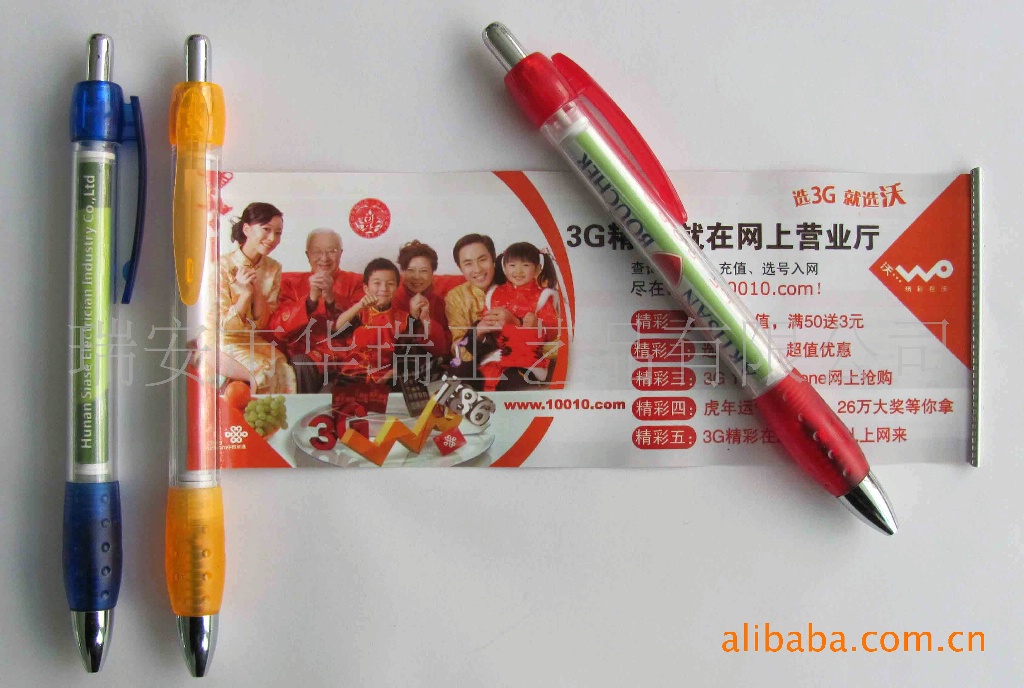 筆的外殼顏色搭配,廣告紙的文字,圖案,顏色搭配均可根據(jù)客戶所提供內(nèi)容,我們再經(jīng)過專業(yè)人員的精心設(shè)計再給客戶確認(rèn)后進(jìn)行生產(chǎn)。以確保您能訂購到您所需求的品牌內(nèi)容。