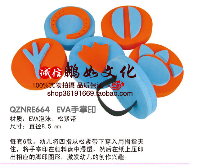 【使用方法】:將印章背面松緊帶套在手上,然后把圖案面泡在顏料里, 少量浸透即可, 然后就可以在紙上壓印出相應(yīng)的圖案了 。