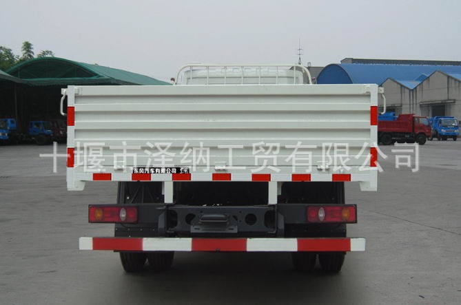 選裝箱體側(cè)板結(jié)構(gòu);總長、軸距、貨箱長按順序一一對應.側(cè)防護:材質(zhì)Q235,連接方式螺栓連接.后下防護:材質(zhì)Q235,連接方式螺栓連接,斷面尺寸120×60mm,離地高度490mm.應安裝具有衛(wèi)星定位功能的行駛記錄儀。ABS型號和廠家:-C2000,東風電子科技股份有限公司制動系統(tǒng)公司。