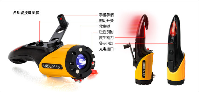 碩而博車用應(yīng)急Led手電筒逃生錘警示燈安全錘救生錘 SB-2009