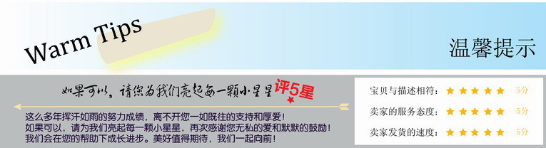2,及時(shí)付款:請(qǐng)客戶拍下貨物后盡快付款以免時(shí)間太久貨物數(shù)量變化較大造成缺貨的情況。
