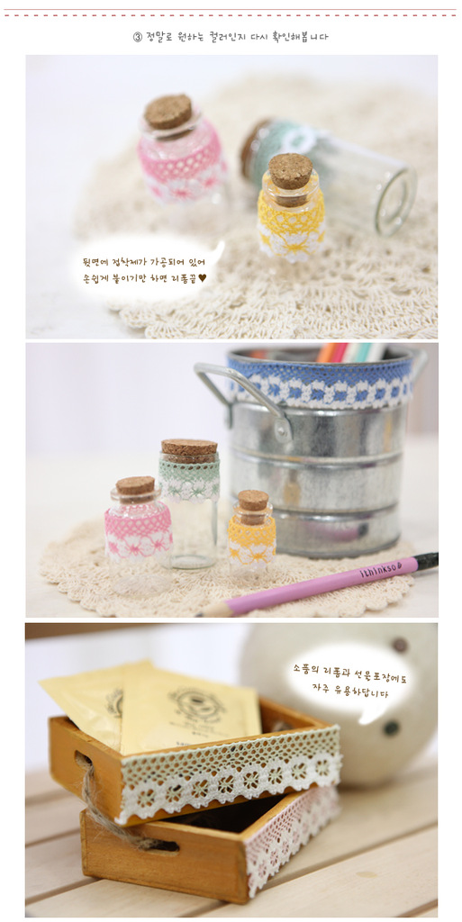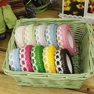 韓國DIY棉布蕾絲花邊膠帶,顏色多樣.可用來裝飾玻璃杯,相冊,玻璃,本本等.裝飾出你的個性,裝飾出你的色彩!