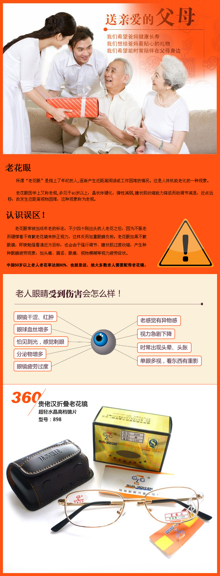 貴佬漢系列老花鏡采用了水晶材質(zhì),按照國(guó)家GB13511-1999執(zhí)行標(biāo)準(zhǔn)裝配成鏡,使中老年朋友