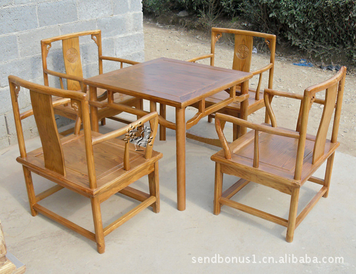 雅宜居實(shí)木 中式仿古 榆木家具 矮圈椅 方桌 茶桌 五件套