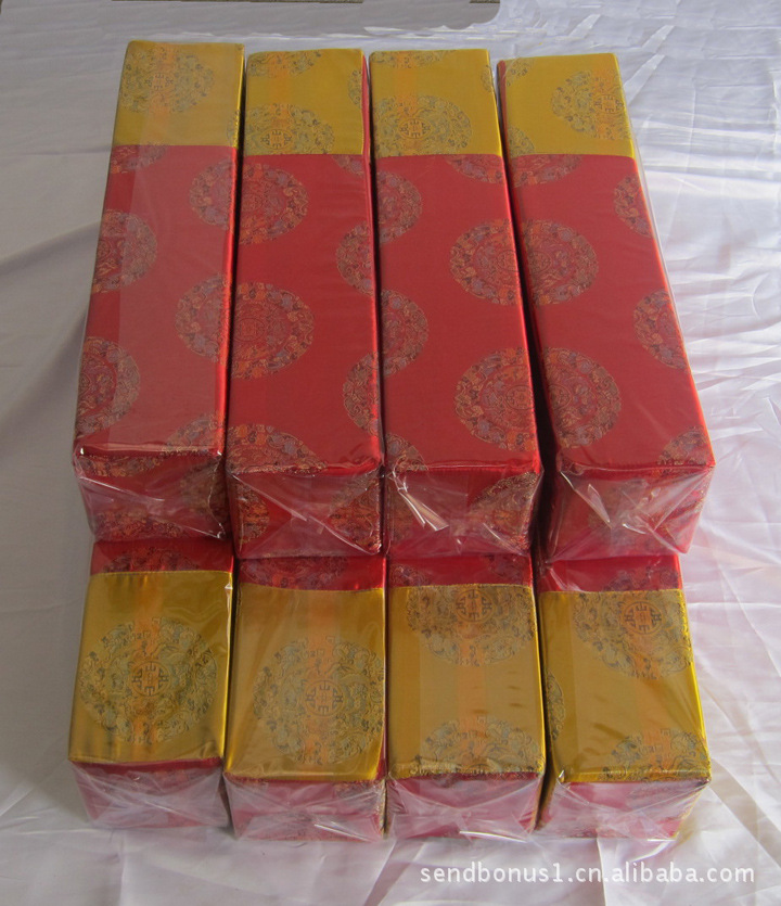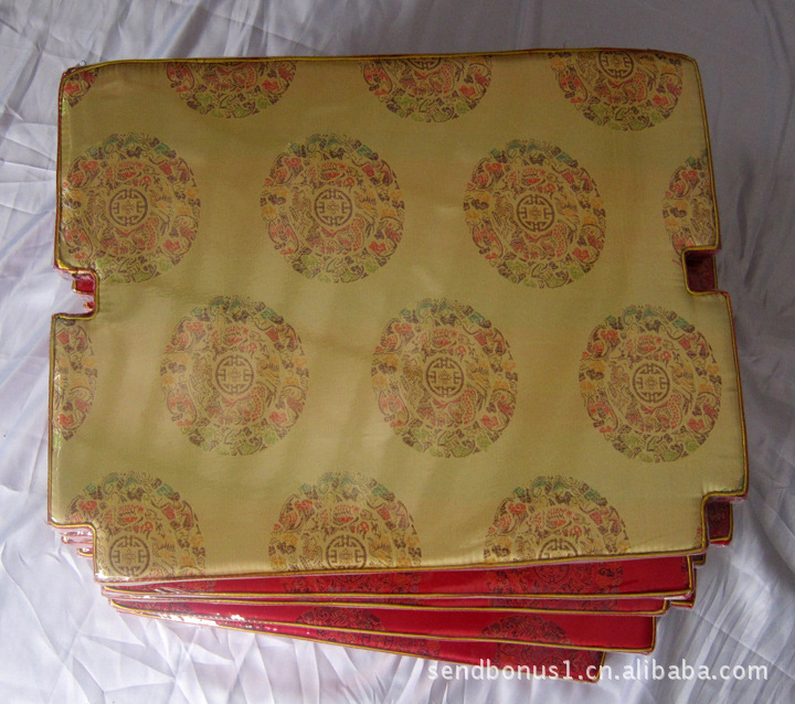 坐墊面料:織錦綢緞。圖案極富仿古韻味,以壽字圖案為主,是實木仿古座具的理想伴侶。