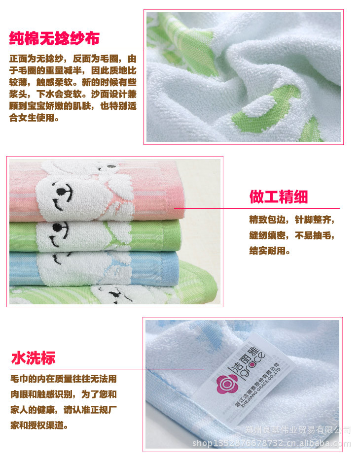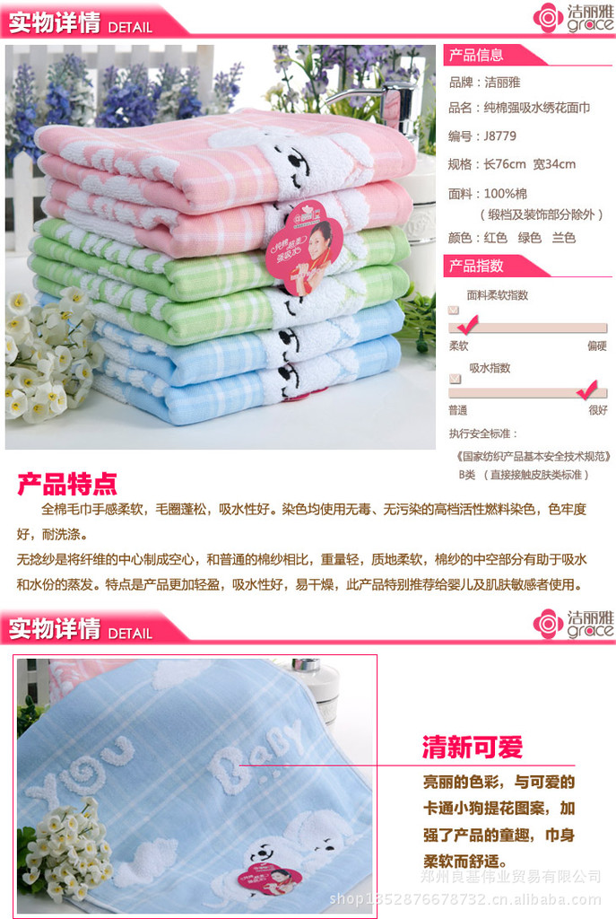 潔麗雅純棉毛巾批發(fā) 8779A強吸水特柔繡花面巾 卡通【一件代發(fā)】